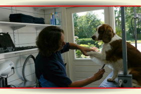 Als u van plan bent uw hond voor zijn trimbeurt in bad te stoppen overleg even met mij. Veel vachten zijn namelijk